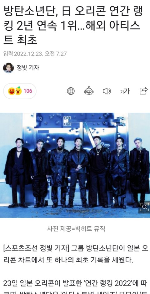 해외가수로서는 2년 연속이 처음이고 역사상 2년 연속은 4팀밖에 없다함