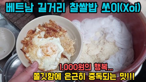 길거리 노상 아침식사 단돈 1,000원의 베트남 찰쌀밥 덮밥 쏘이(Xoi)~~ 한번 먹으면 중독된다는데...(박닌)
