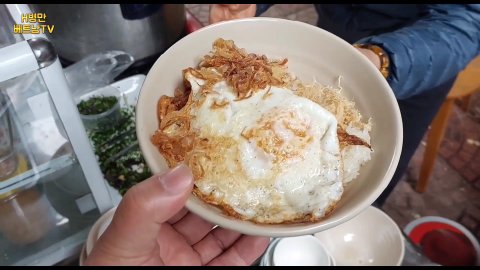 계란 후라이(250원)를 얹어 먹고 있습니다.