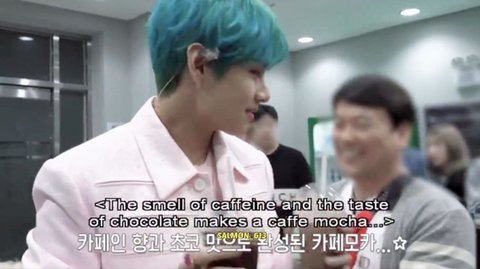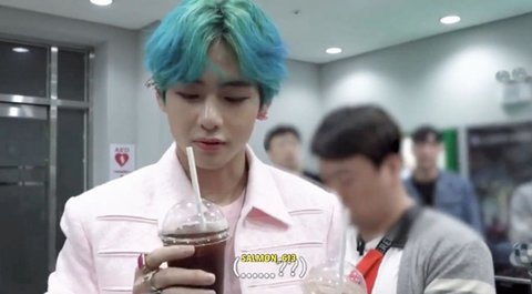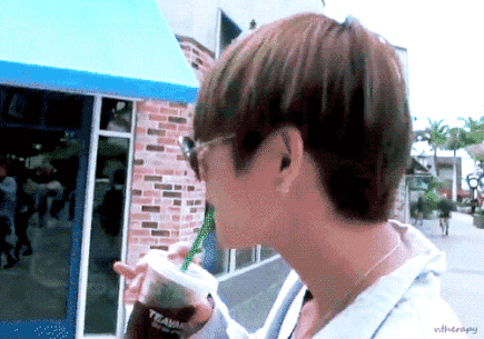 step3. 재빨리 왼손에 들고있던 초콜릿 음료를 마신다