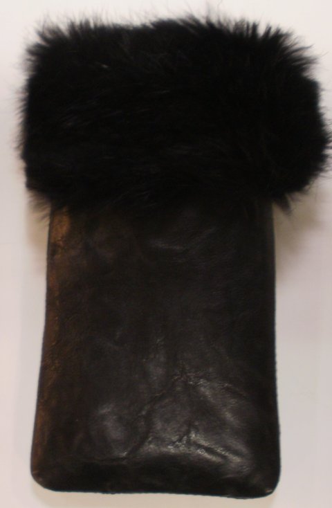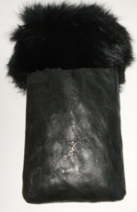 블랙 컬러 양가죽과 천연 모피를 콜라보하여 제작한 가죽 폰 케이스입니다.(마디샤)