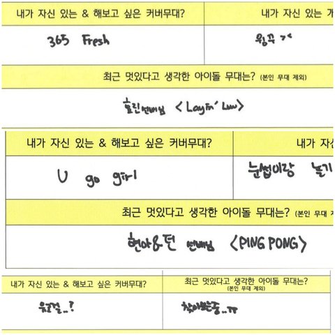 주간아이돌 설문지가 뭐라고 저걸로 몇절째 욕먹는중 찾아보니까 전에는 다 써서 냈었음