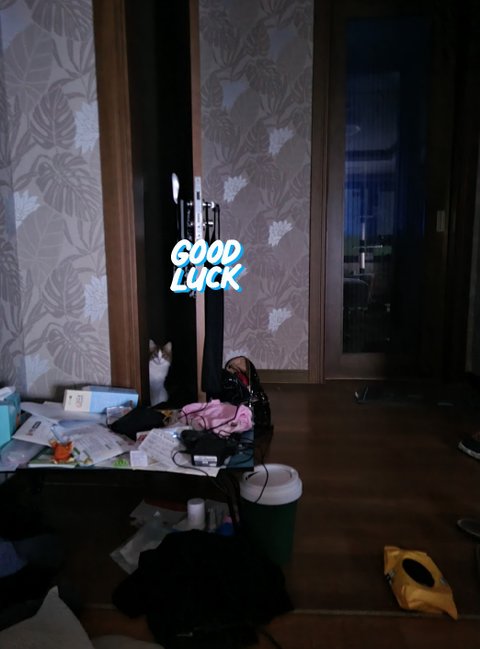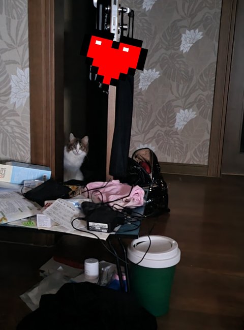 일단 가까이 가면 바로 도망을 가기 때문에 멀리 침대에서만 찍을 수 있어서 화질이 안 좋고, 불을 끈 상태일 때에만 와 주어서 휴대폰 야간모드로 말 소리 안내고 사진을 찍었습니다.