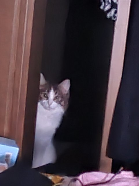 근데 그 문틈 사이로 하얀 물체가 있어서 첨엔 저희 집 냥이인줄 알았는데 다시 보니 베리였어요. 정말 믿어지지 않았습니다.