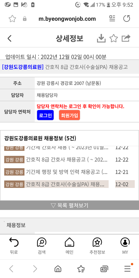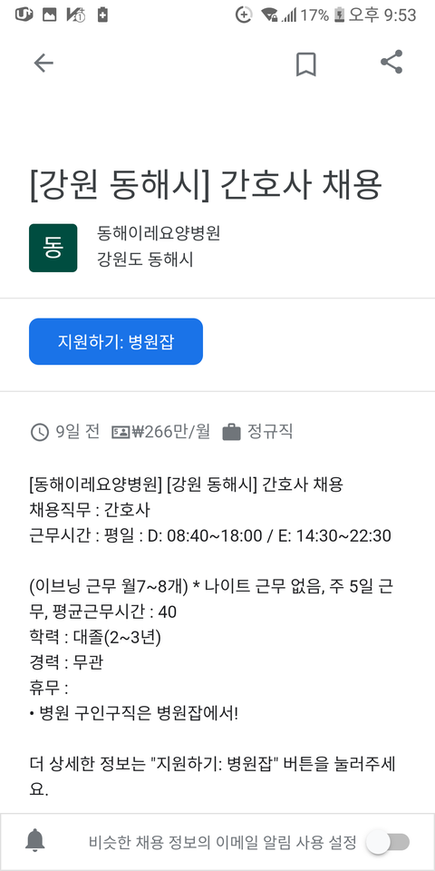 [동해이레요양병원 채용] 간호사 채용 (~채용시까지) | 병원잡 채용정보 - 병원구인구직은 병원잡 byeongwonjob.com