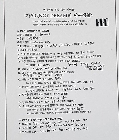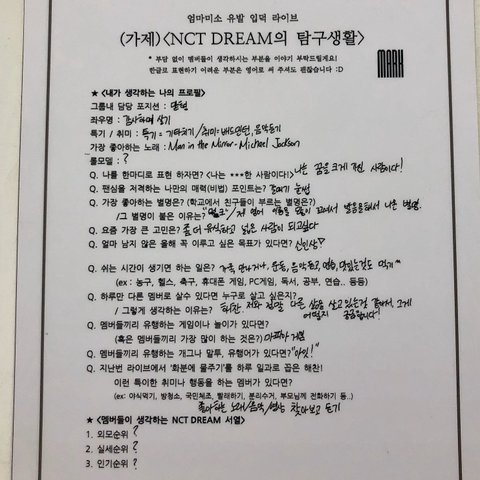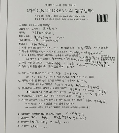 NCT DREAM의 탐구생활<<브이앱에서 쓰던 그거