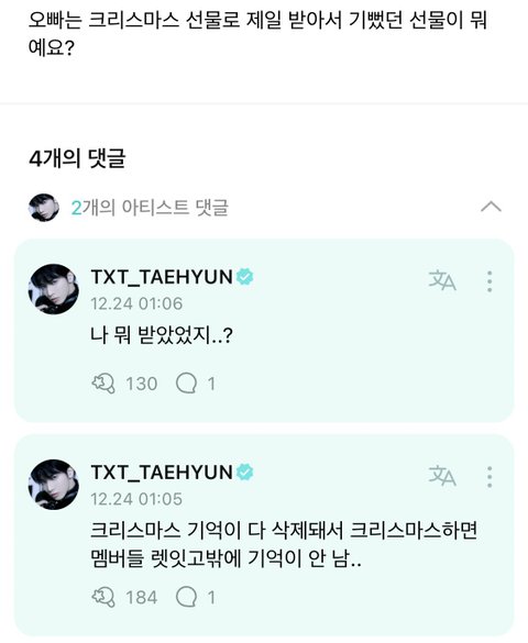 크리스마스하면 투바투 렛잇고 자동 완성임