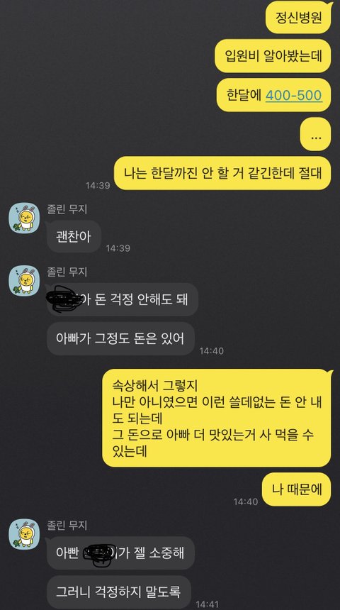 힘내.. 근데 아빠를 생각해서 입원말고 다른 방법으로 극복하려는 시도는 다양하게 여러번 해봤으면 좋겠어 나도 우울증 환자였지만 저건 너무 돈낭비 같기도 하고 아버님이 힘드실 거 같아 우울증은 진짜 끝이 안보이는 장기전이라..