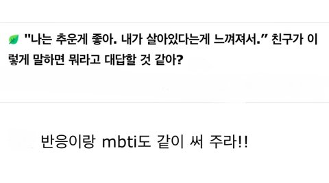 isfj 속으로는 엥? ㅇㅈㄹ하는데 겉으로는 오 너 추운거 좋아해??이럴듯