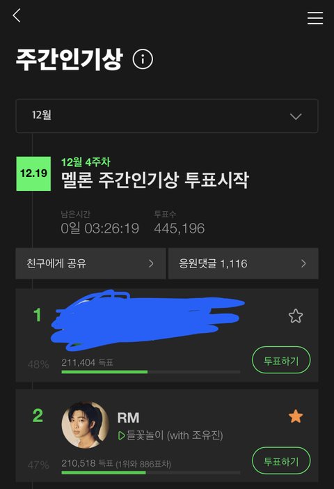 어그로 미안ㅠ 멜롱 1위랑 800표 차이 남 안 한 방울이 있음 투표해죠라