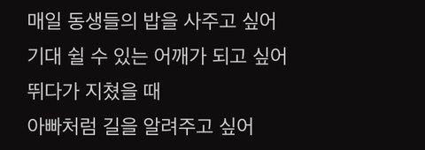 그때도 어리다고 생각했지만 지금 봐도 너무 애긴데.. 동생들이 기대서 쉴 수 있는 어깨가 되고 싶고 아빠처럼 길을 알려주고 싶다는 마크가 나는 너무 기특하고 자랑스럽고 멋있어..