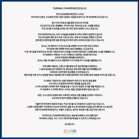 지속적인 악성정병이고 글쓰고 혼자 자작댓 도배하면서 선동중이니까 ㅂㅁㄱ부탁하고 소속사메일로 많이좀 보내주라.이위로 댓글은 쓰니 자아분열도배와 주작선동