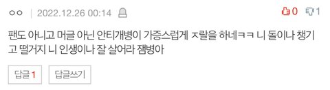 아님 아직 블핑글에서도 지랄발광 중임ㅋㅋㅋㅋ 걍 이젠 전략을 바꾼듯ㅋㅋ