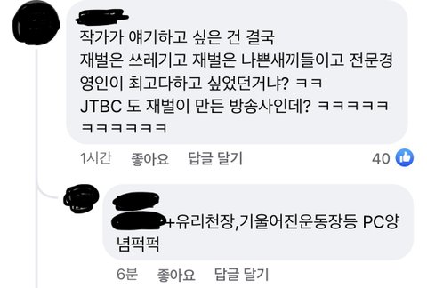 JTBC는 앞으로 무조건 거른다 정치병 말기 환자 작가들 ㅋㅋㅋ 여자작가들은 다 페미에 좌빨이냐 어째 그알도 요새 그러더니