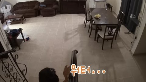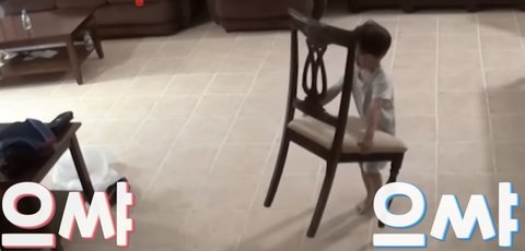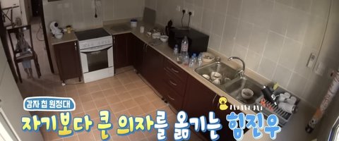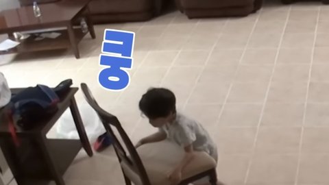 거실 식탁의자 들어서 옮기는 진우