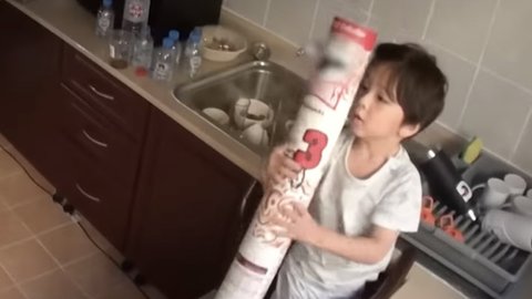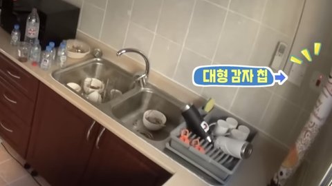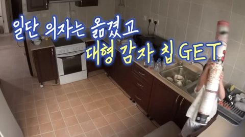 싱크대에 있는 감자칩이 진우에게는 높아서