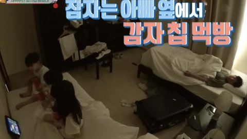 콰삭거리는 감자칩 씹는 소리로 아빠 깨움
