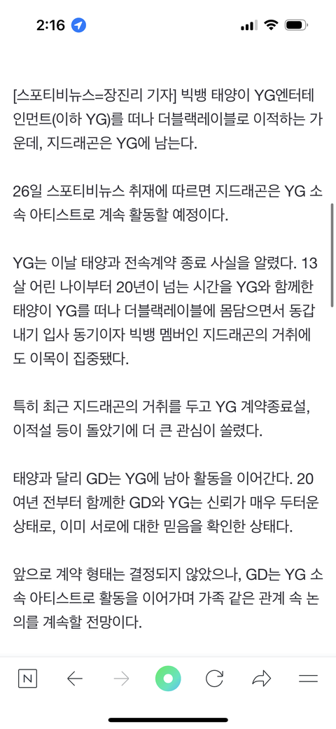 태양 와이지 나갔고 지디는 남았네