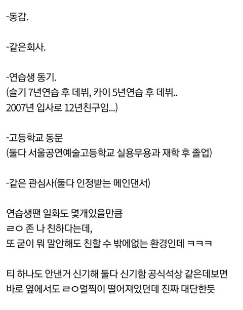 카이 크리스탈 설리 슬기 공승연 연습생 동기야 슬기도 크리스탈도 라스에서 말한적 있음