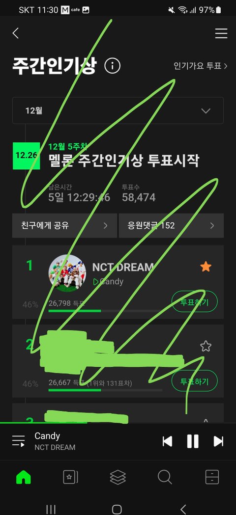 주간 인기상 격차 200도 안 됨 투표하자