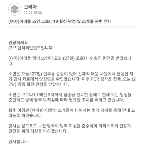 전소연 코로나 확진이라는데 가대전 무대 어칼라고..?