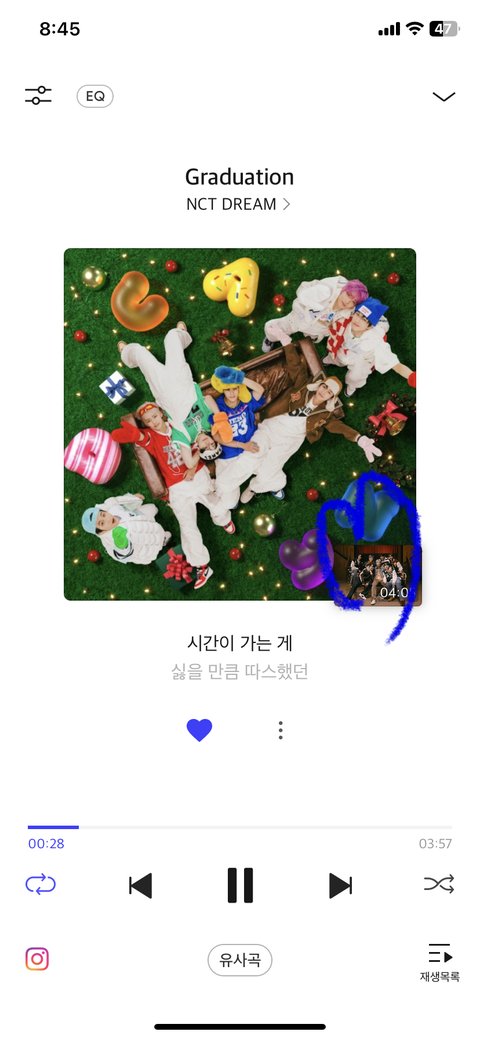 그래서 나도 첫곡으로 바로 캔디 부름 그리고 graduation이랑 발자국도 나왔더랑!