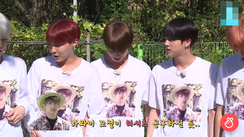 야유회 가는 방탄에게 또 공구한 단체티 던져줌ㅋㅋㅋㅋㅋ이번에는 아꼬티다!
