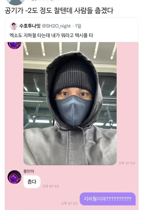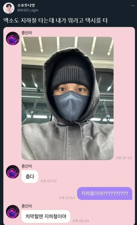 몇호선임? 지하철에서 카이랑 마주칠 확률이 있단거네 ㄷ