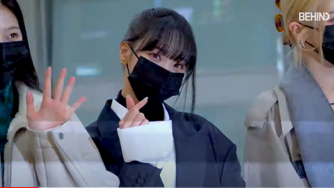 르세라핌 김채원 출국, 애교 넘치는 '심쿵 하트'