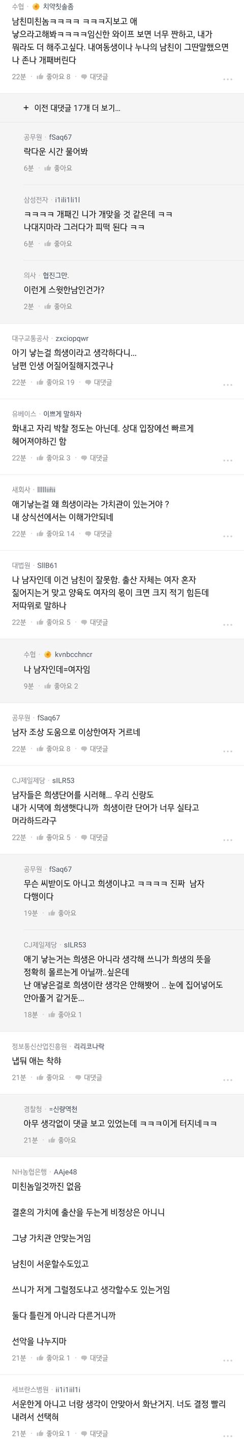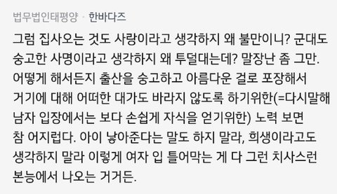 양육은 아니고 그럼 임신출산에서 남자가 희생하는게 뭐가 있냐고….