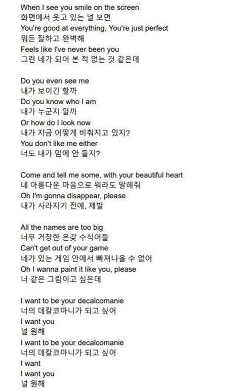 정식제목도 없고 그냥 '데칼코마니'로 불리고 있었는데 곡을 지웠다고ㅠㅠ