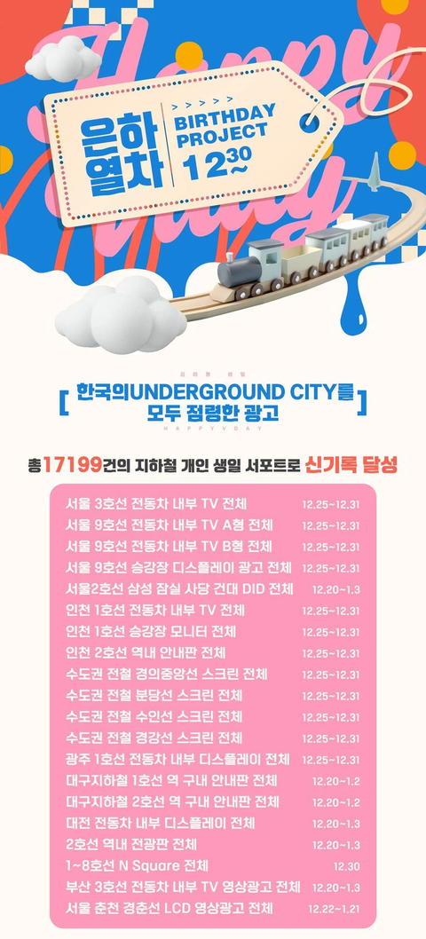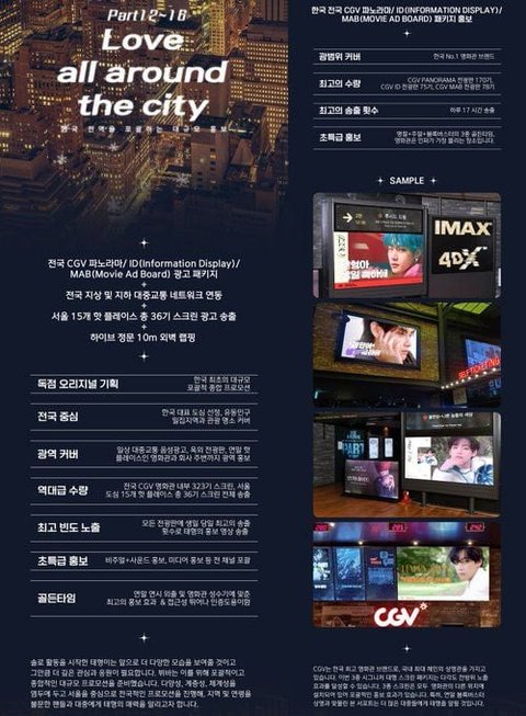 12~16 - 전국CGV영화관 323개 스크린광고,서울15개 핫플레이스 36개 스크린광고, 지하철 버스정류장 음성광고, 하이브 정면 현수막광고