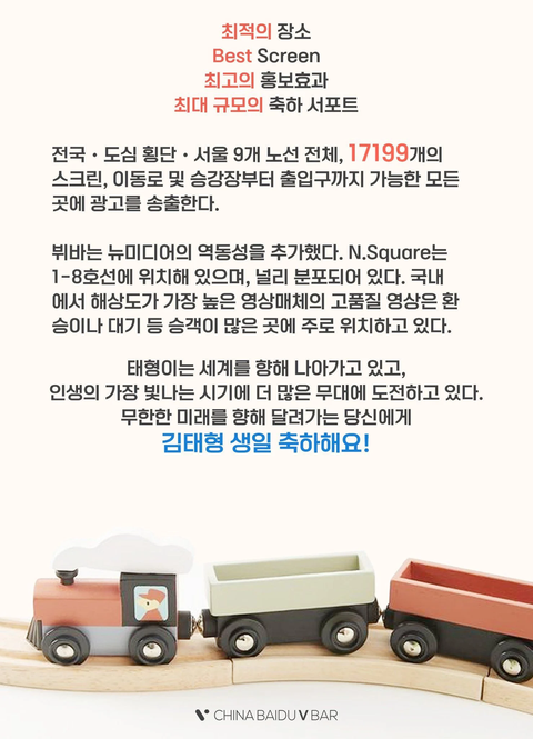 바이두 뷔바는 음반공구부터 서포트 스케일이 커서 기업규모로 광고한다는 말도 많은데 이번 생일 서포트도 역대급인듯