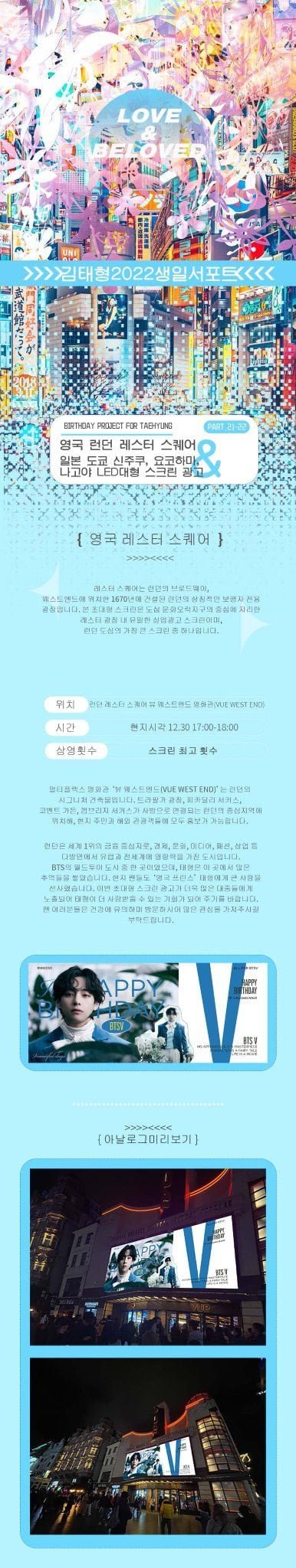 21,22 - 영국 레스터스퀘어, 일본도쿄 신주쿠유니카비전,요코하마랜드마크36개스크린,나고야히사야센트럴비전 스크린 광고