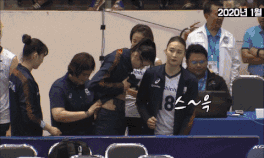 그리고 김연경이 찢어진 복근 테이핑하고