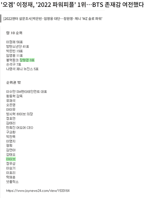 만 18세 나이로 대한민국 파워피플 5등한게 진짜 대단한거 같음