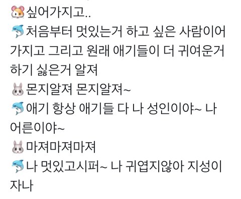 지성이가 귀여운거말고도 조금 다른모습도 보여주고싶다 이런식으로 말했나봐 그럣더니 ㅋㅋㅋㅋ원래 애기들이 더 귀여운거 하기싫어한다고 ㅋㅋㅋㅋ
