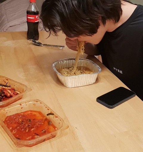 (사진이 없어서 국물라면에 배추김치, 파김치 먹는 짤로 대체)