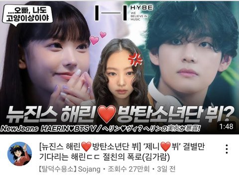 서치좀넣을께) 뉴진스 해린 혜인 하니 방탄 뷔 슈가 지민 정국 알엠 하이브 어도어 유튜브 투바투 르세라핌 엔하이픈 방탄소년단