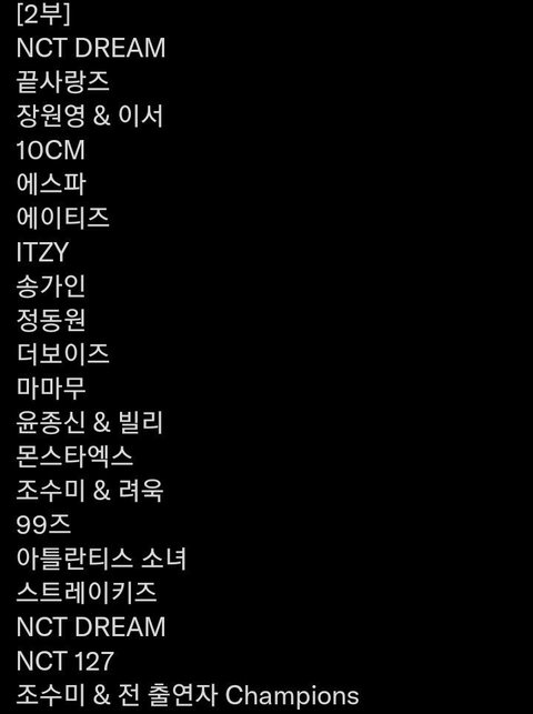 1부중후반?에 해차니 윦 하 선배님이랑 비밀번호486 콜라보나오고 2부첫무대 드림 (캔디인듯) , 2부후반부에 버퍼링하는듯 !!