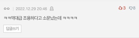 역대급 조용하다는 소문을 누가 낸거야?? 출처 어딘데 ㅋㅋ