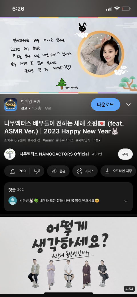 나무엑터스 새해 영상에 나왓어