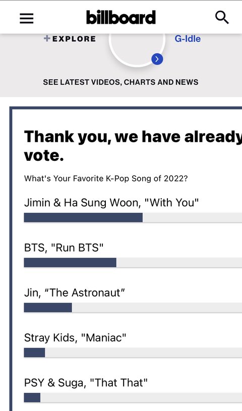늦게 알아서 이제 투표했는데 보니까 단체곡이 2위더라고