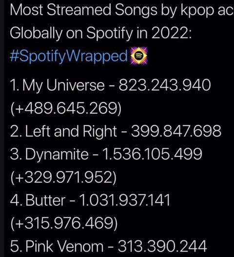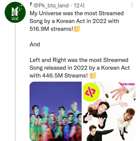 올해 제일 많이 스트리밍 된 케이팝은 방탄 마유고 올해 나온 곡들 중에서는 랩앤라임 ㅠㅠㅠ 너무 자랑스럽다 박박