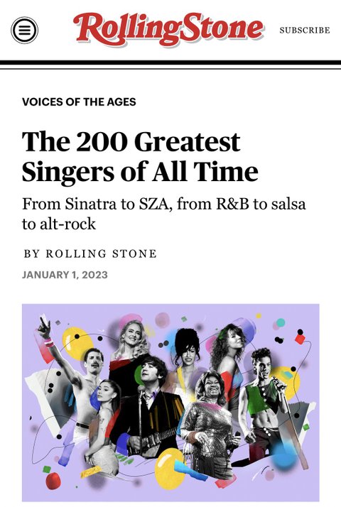 ㅁㅁㄷ 본문시작에 롤링스톤지가 선정한거라고나옴 유명뮤지션╋롤링스톤스태프╋컨트리뷰터 의견에 글로벌트렌드 등을 더해서 선정했다고함