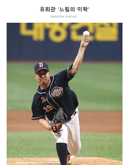 현역 선수일 때 유희관을 '느림의 미학'이라고도 불렀는데