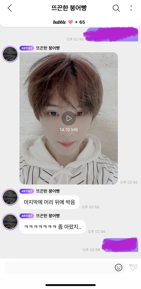 어제 지성군이 보낸 영상이 내가 마지막으로 받은 버블이얌
