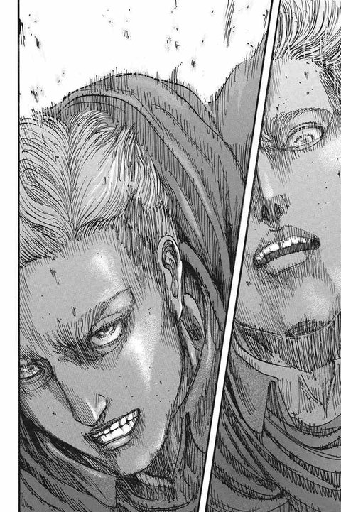 저 원작장면의 러프?스케치?가 있는데 거기서 엘빈이 저 원작 왼쪽처럼 웃고있는거 제대로 보이거든 그 흐릿한 스케치사진 있는 사람 hoxy 있니......있으묜 플리즈....내 최애 장면이라서
