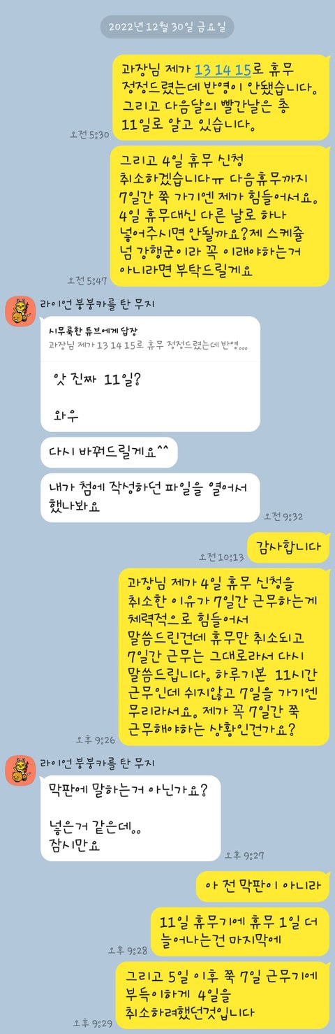 먼저 시간대로 말많은데 저 시간에 보낸ㄱ건 저 시간에 과장님이 단톡으로 스케쥴을 올려서고 저희는