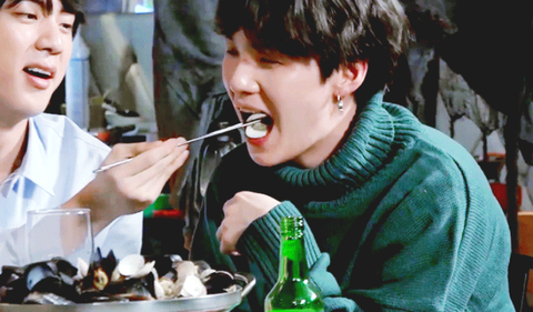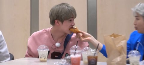 먹고 싶은게 있으면 가만히 입 벌리고 기다리는 방탄소년단 진